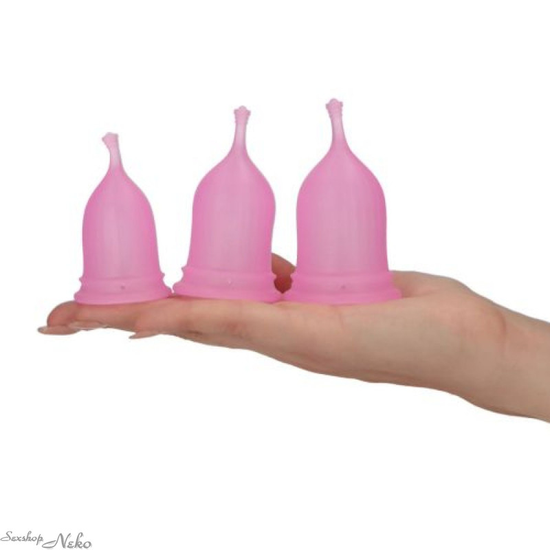 Sada obsahuje 3 kalíšky různých rozměrů, díky čemuž si snadno vyberete ideální velikost podle intenzity menstruace nebo aktuálních potřeb. Kalíšky jsou vyrobeny z hypoalergenního lékařského silikonu v kombinaci s ABS materiálem, který zajišťuje pevnost, flexibilitu a maximální bezpečnost při používání.