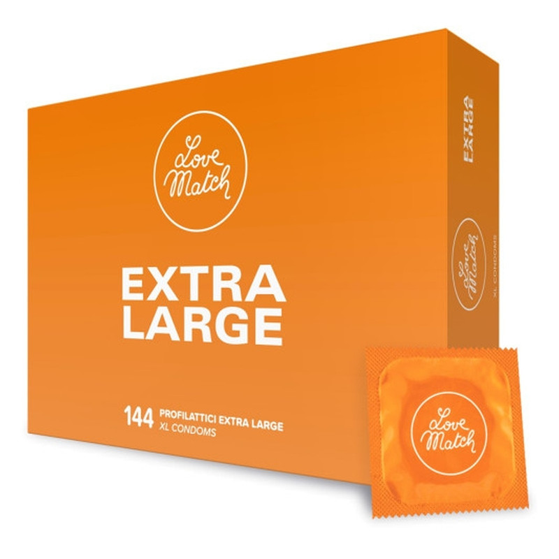 Kondomy Love Match Extra Large v maxi balení 144 kusů jsou ideální volbou pro muže, kteří potřebují větší rozměr kondomu bez kompromisů v pohodlí, bezpečnosti a spolehlivosti. Jsou navrženy speciálně pro větší velikosti penisu a poskytují maximální komfort i při delším používání.