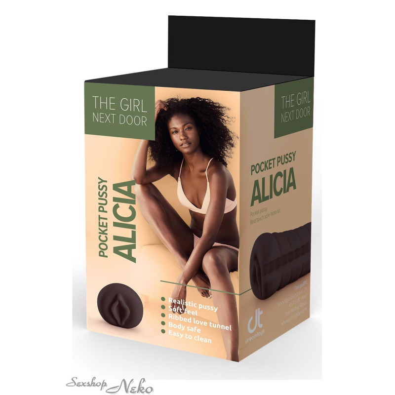 Alicia je „dívka od vedle“, která vás snadno dostane. Vnitřní tunel je natahovací a otevřený, takže se přizpůsobí různým délkám i tvarům penisu a zároveň výrazně usnadňuje čištění po použití. Strukturovaný povrch jemně, ale účinně stimuluje penis a zvyšuje intenzitu orgasmu.