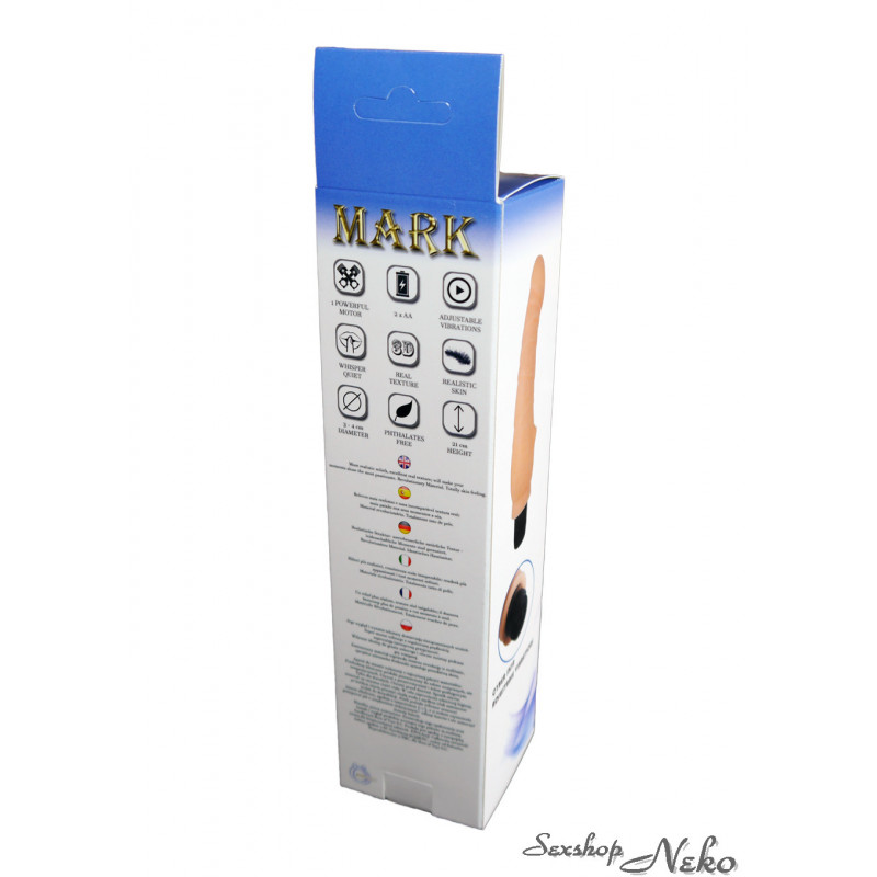 Vibrátor Mark je realistická erotická pomůcka navržená pro intenzivní a autentické prožitky. Jeho přirozený vzhled a detailní čisté textury poskytují mimořádně realistický pocit, který se velmi blíží skutečné pokožce a zaručuje nezapomenutelné uspokojení.