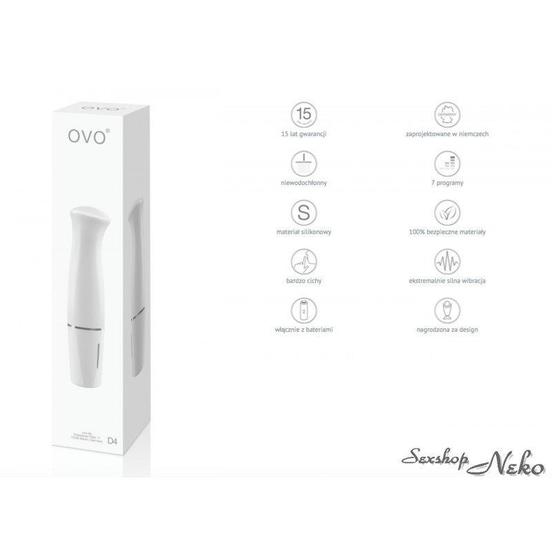 Exkluzivní vzhled a elegantní balení dělají z OVO D4 Mini Vibe White ideální dárek pro každého, kdo ocení kvalitu, design a spolehlivý výkon.